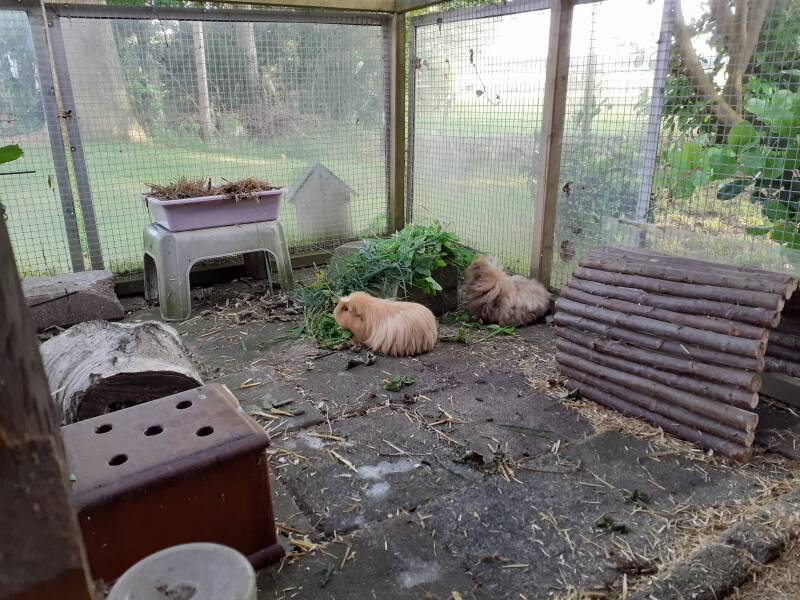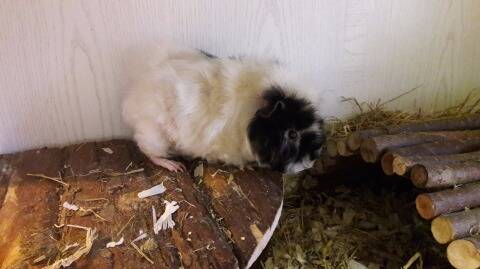 Een ouder zeugje uit de groep van Dalfsen, leeftijd is schatting. Ze kwam in augustus 2023 bij ons wonen. Een van de gezelligste cavia's die altijd voor je voeten loopt om te vragen naar eten.